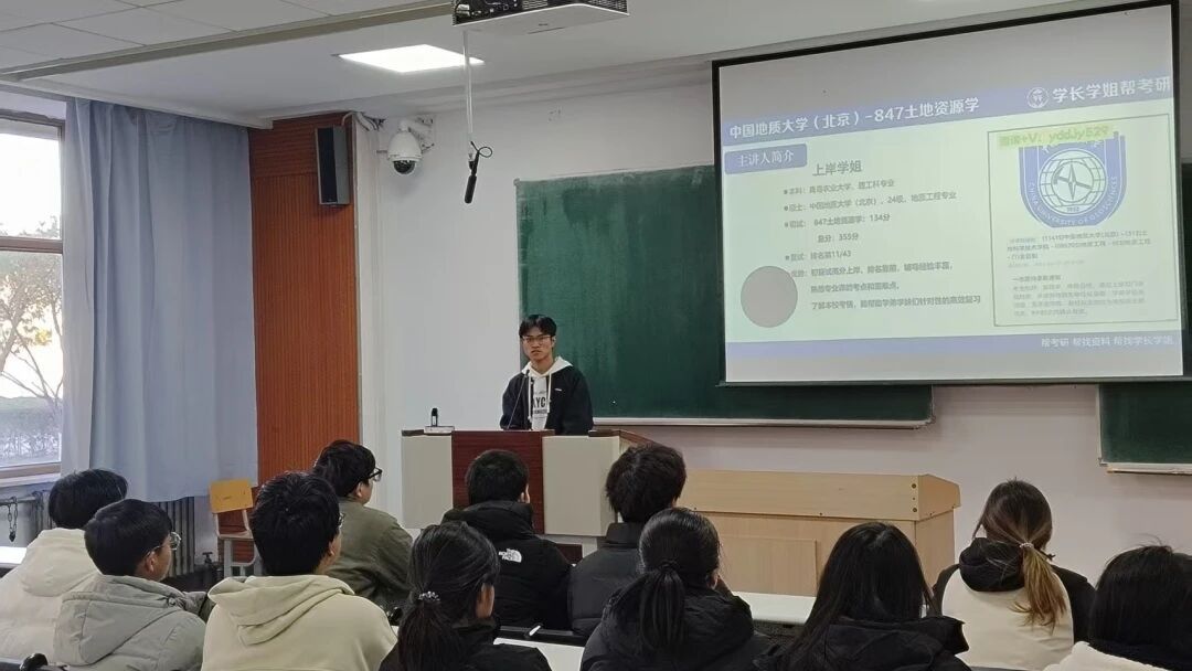 当书页翻过四季,当笔尖划过晨昏,考研路上的你,是否曾在知识点的迷宫里徘徊,在孤军奋战的深夜里迷茫。那些关于时间分配的纠结、资料选择的困惑、心态调节的难题、或许你正独自承受,但总有人曾经历经相似的跋涉,终见曙光。为响应教育强国战略,落实立德树人根本任务,搭建高质量升学交流平台,测绘与勘查工程学院特于2025年10月25日在公共c108举办“研途有你,筑梦未来”考研交流-经验分享活动。旨在为处于迷茫与探索中的学子搭建一座沟通的桥梁,传递经验、点燃希望,让每一份梦想都能在秋光中找到回响。