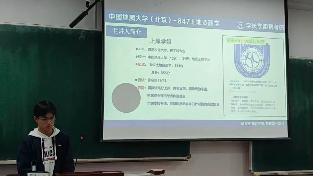 本次活动由主持人引导流程,打破单项输出的沉闷,营造轻松活跃的交流氛围开始,之后在读研究生代表,带来一场干货满满的经验盛宴。该同学本科毕业于青岛农业大学理工科专业,现为中国地质大学(北京)24级地质工程专业硕士研究生。在考研过程中表现优异,具备扎实的专业基础和高效的备考能力。并且在本科期间多次获得校级优秀学生奖学金;参与校级科研项目并获“科技创新优秀奖”;硕士入学后获“研究生新生学业奖学金”。分享会上,该研究生系统围绕地质工程考研全过程展开,内容包括:专业概况与近年考情分析、初试科目设置与复试流程介绍、专业课辅导体系构建、高效资料推荐,并在最后设置答疑互动环节。旨在帮助考生全面了解备考路径,掌握关键复习资源,提升应试策略与实战能力。过程中也将提供考研辅导、资料获取及学长学姐对接等支持,助力考生顺利备考。而分享环节的余温未散,主持人便循循引导,邀请在场同学畅谈感悟。话音刚落,现场便展开了热烈的交流。有同学动情地表示,该研究生分享的某个备考细节让他感同身受,瞬间消除了长期以来的孤独感。