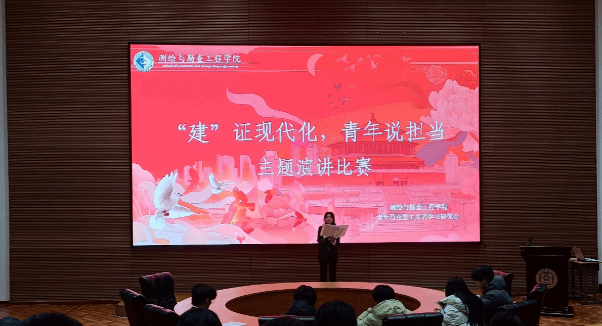 为深入学习贯彻习近平新时代中国特色社会主义思想,深刻领会党的二十大精神及党的二十届四中全会战略部署的核心要义。测绘与勘查工程学院于2025年11月21日在土木教学馆一楼圆弧报告厅举办“‘建’证现代化,青年说担当”主题演讲比赛。