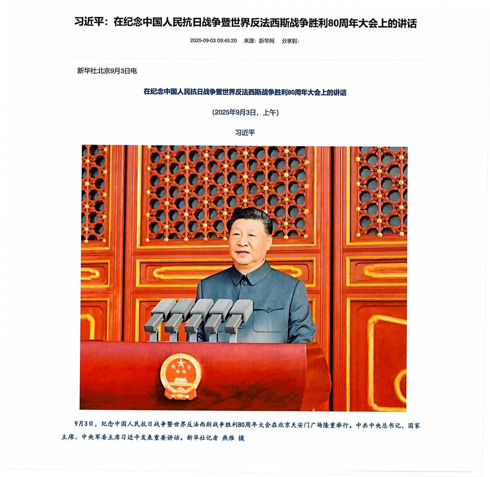 习近平:在纪念中国人民抗日战争暨世界反法西斯战争胜利80周年大会上的讲话