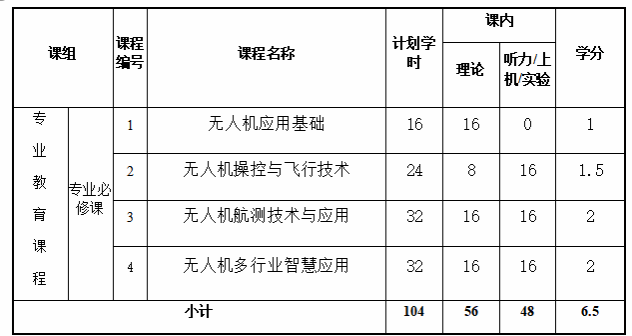 无人机技术与应用微专业基于国家低空经济战略背景,面向无人机应用领域的市场需求,多学科交叉融合,培养具有良好的思想道德品质,遵守行业法规和职业道德,掌握无人机基础理论、无人机飞控基本理论及实践能力,及其在多行业领域的智慧应用能力,具备低空经济产业发展所要求的无人机飞行实操和行业应用能力的复合型应用人才。
