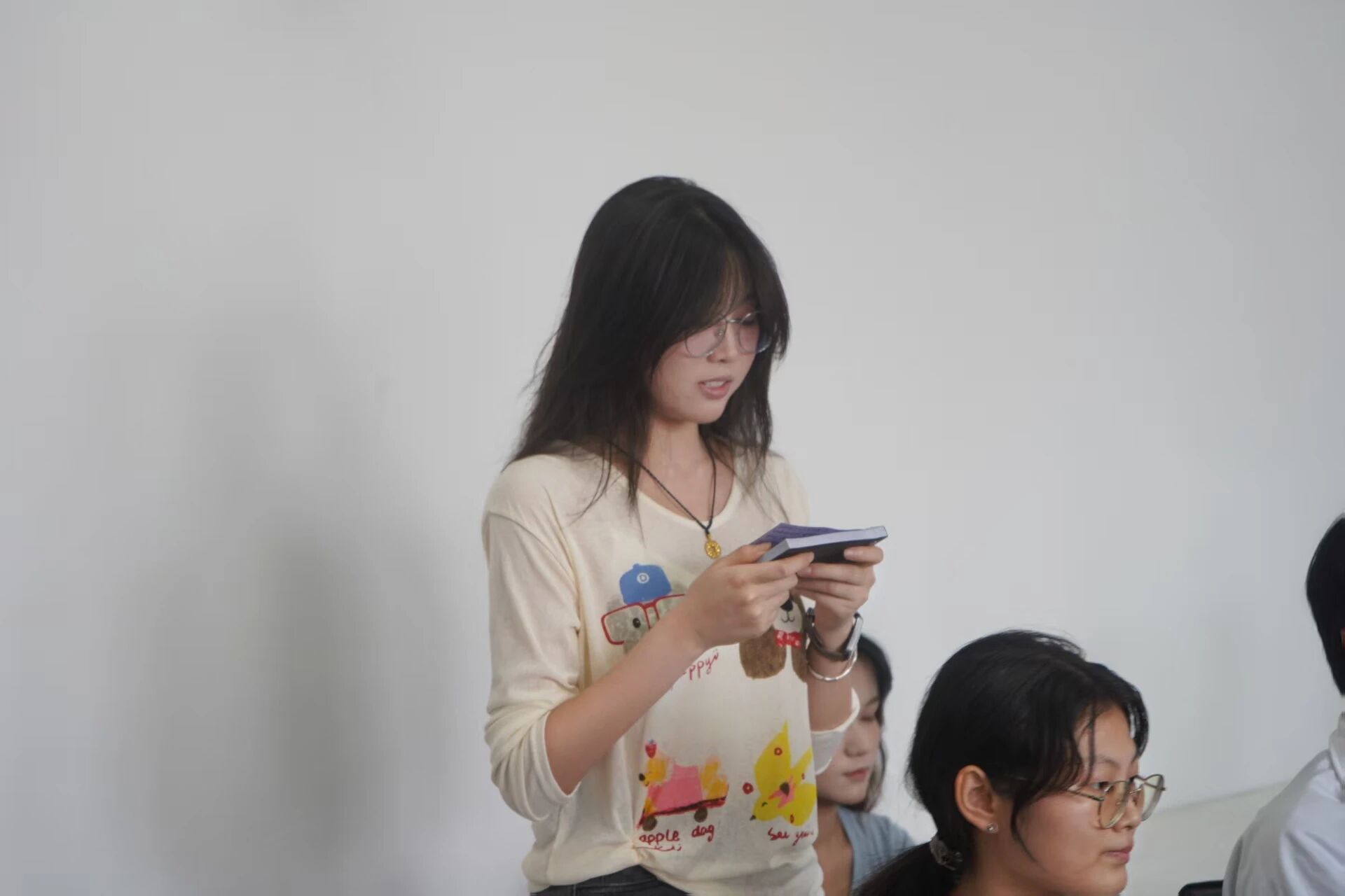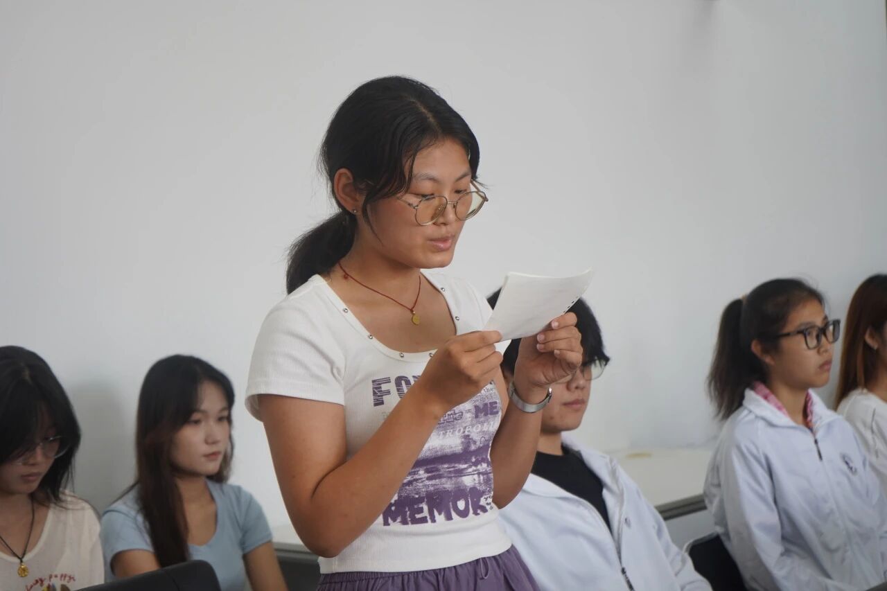 阅兵仪式结束后,进入座谈分享环节。四位学生代表先后发言,结合自身专业和成长经历,畅谈观看阅兵式的感动与思考。