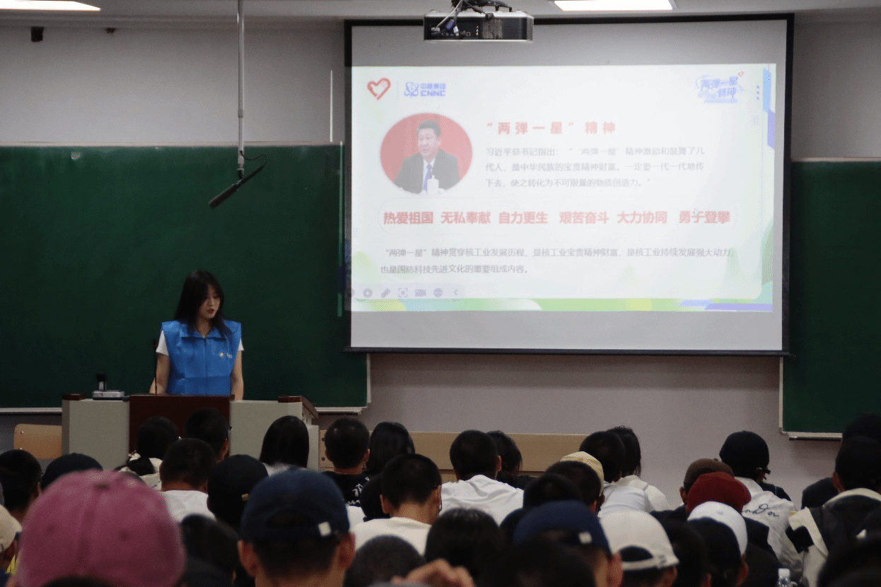 为赓续红色血脉,传承“两弹一星”精神,点燃青春梦想,“两弹一星”精神宣讲团于2025年10月23日,在土木教学馆D307成功举办 “两弹一星”人物事迹主题宣讲会。
